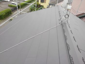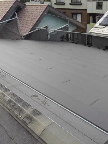 粘着ルーフを敷いてスーパーガルテクトを葺いていきます