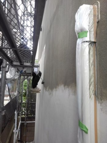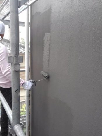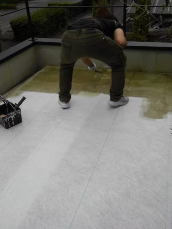 ケレンしプライマー塗布後ガラスマットを敷いて樹脂を塗っていきます