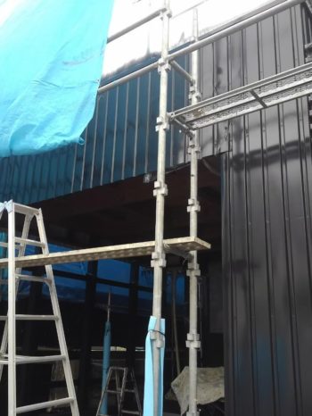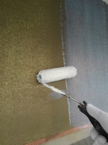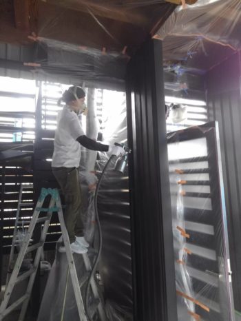 ガルバニウム合板は艶ムラが出ないよう吹付で施工します