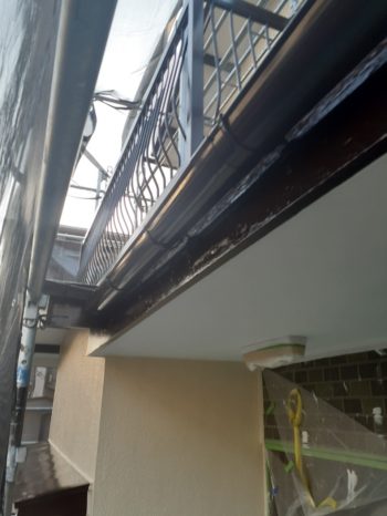 破風板、雨樋も丁寧に塗っていきます
