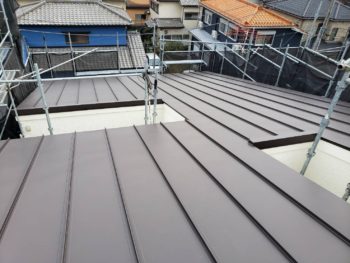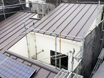 外壁は艶消しがご希望でしたので水谷ペイントのナノコンポジットをご提案しました。 屋根は当初カバー工法の予定でしたが長さと勾配から規格を超えてしまうので立平葺きをご提案致しました。 |