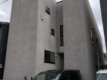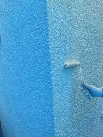 外壁中塗り施工中です