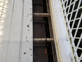 ベランダの床下を確認すると、雨漏りの原因となる箇所を発見しました。